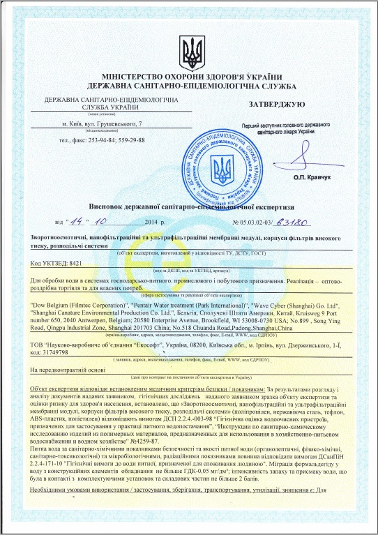 Сертифікати якості даної іонообмінної смоли: